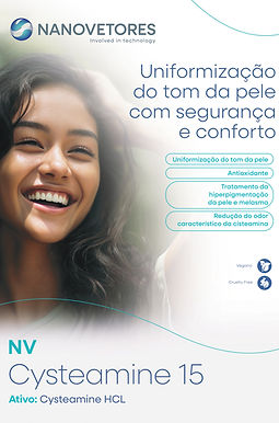 O sistema inovador de encapsulação Nanovetores possibilita a entrega inteligente e segura da Cisteamina garantindo também uma maior eficácia e estabilidade de cosméticos para o tratamento da hiperpigmentação e melasma. Por ser um ativo desafiador, a NV Cysteamine 15 traz as seguintes vantagens: