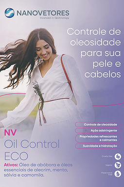 O NV Oil Control ECO é uma solução inteligente desenvolvida pela Nanovetores para o controle eficaz da oleosidade em peles e cabelos com tendência a esse excesso. A fórmula é composta por um blend de ativos, incluindo óleo de abóbora e óleos essenciais de alecrim, menta, sálvia e camomila, todos nanoencapsulados utilizando a tecnologia exclusiva da Nanovetores.