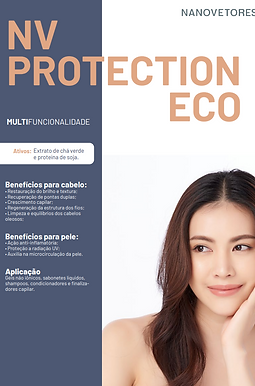 NV Protection ECO é um blend de ativos encapsulados que age como uma camada termoprotetora que promove a blindagem e incremento de massa capilar. A encapsulação através da tecnologia desenvolvida pela Nanovetores permite a estabilização de ativos instáveis conferindo aumento de permeação cutânea, incremento sensorial no produto final e alta substantividade pelos cabelos e couro cabeludo. O NV Protection ECO trata profundamente os fios do cabelo, restaurando seu brilho e textura.