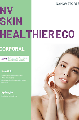 NV Skin Healthier ECO é um blend de ativos encapsulados em nanopartículas biopoliméricas, com gatilho de liberação enzimático. Possui liberação prolongada, liberando o ativo encapsulado gradualmente por um período de 12 horas após a aplicação. A encapsulação do através da Tecnologia Nanovetores protege e estabiliza os ativos aumentando sua permeação e eficácia.